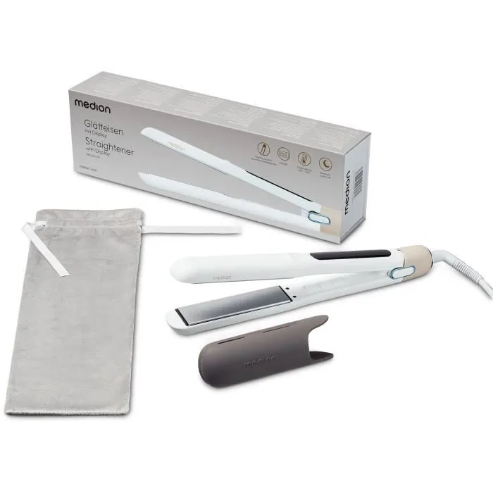 Plancha de pelo - MEDION - MD19925 - 56 W - 5 programas - 165 a 210 °C - Pantalla LED - Blanco