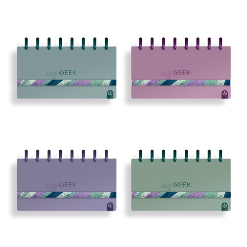 Planner semanal y check list sin fecha para que planifiques y organices tu vida a tu manera. Portadas de polipropileno, goma elástica de cierre y discos plásticos extraíbles.