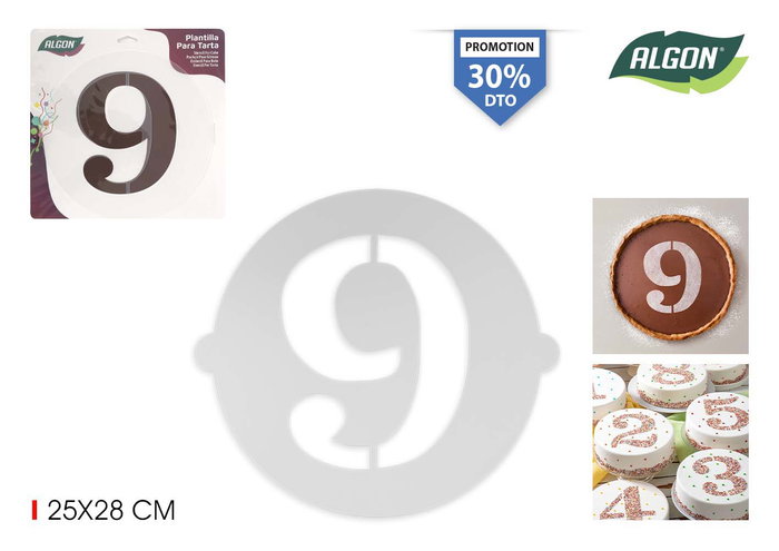 Algon Plantilla Tarta Cumpleaños N-9 Grande 25 cm (36 Unidades)