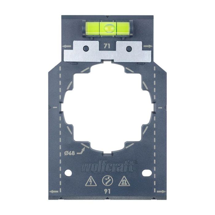 Wolfcraft 5975000 Plantilla para marcar y alinear, para medidas de 71 y 91 mm, obra en seco, instalación de cajas de enchufe e interruptores