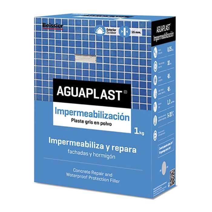 Aguaplast Impermeabilizante Plaste en Polvo Gris 1 kg para Fachadas, Hormigón y Piscinas, Alta Adherencia y Resistencia al Agua Salada