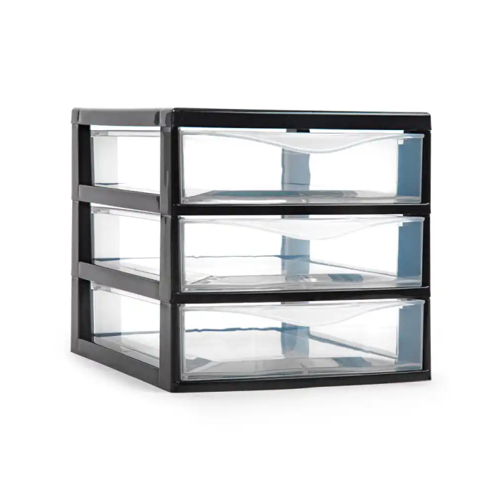 Plasticforte Cajonera Tajo 3 Cajones Negro, 180 x 230 x 170 mm, Organizador Escritorio Oficina, Plástico Reciclable