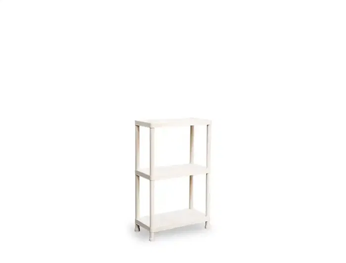 Estantería modular con 3 baldas. Color beige. Fabricada con material reciclado en España. Diseño modular, resistente y estable. Soporta 25 kg por estante. Incluye dispositivos de fijación para anclar a la pared y entre estanterías , garantizando la seguridad. Cumple normativa.