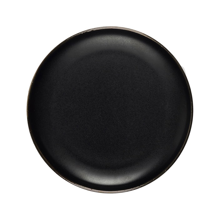 - Plato negro con ribete dorado, moderno y elegante.