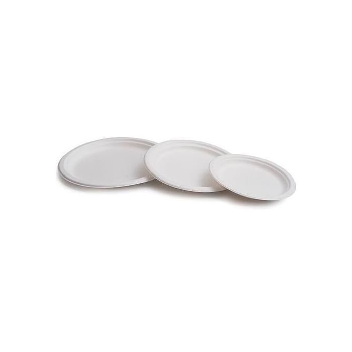 Plato Caña De Azúcar Biodegradable Blanco 22,5 cm Pack 50 Unidades