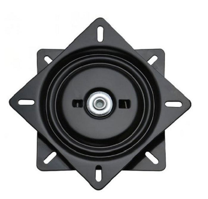 Está fabricado en acero y tiene un acabado en color negro. Este plato giratorio cuenta con una base de 160 x 160 mm y soporta hasta 80 kg de carga.