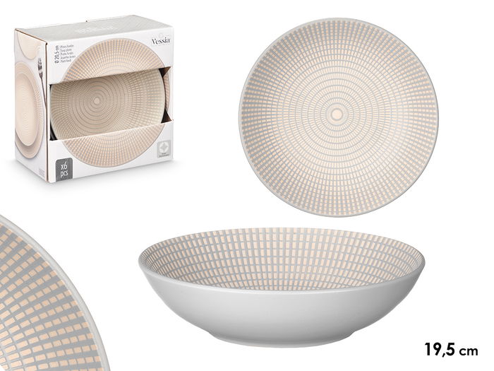Vessia Plato Hondo Grabado Gris 20.5 cm Ceramica (Set de 24)
