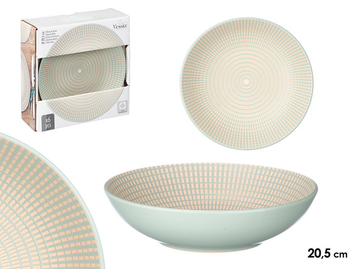 Vessia Plato Hondo Grabado Verde 20.5 cm (Set de 24)