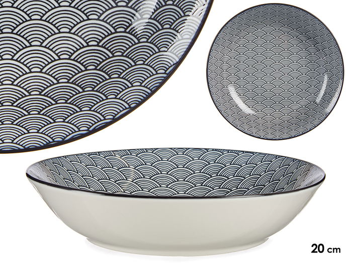 PLATO HONDO 20CM ONDA JAPONESA NEGRO