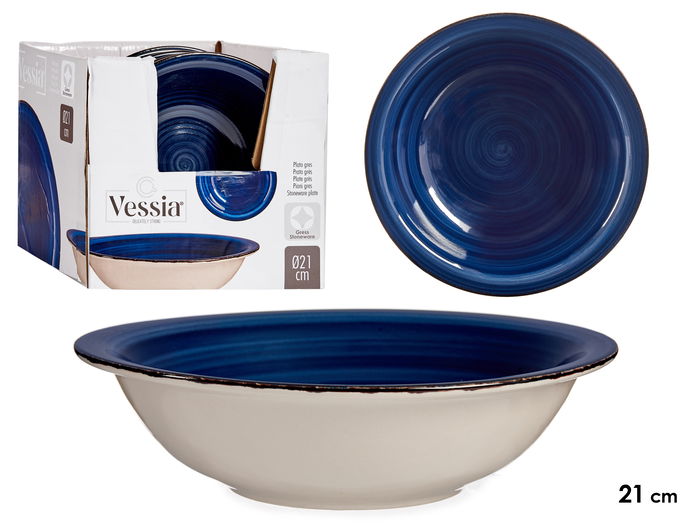 Vessia Plato Hondo Gres Azul Borde 21 cm (Set de 24)