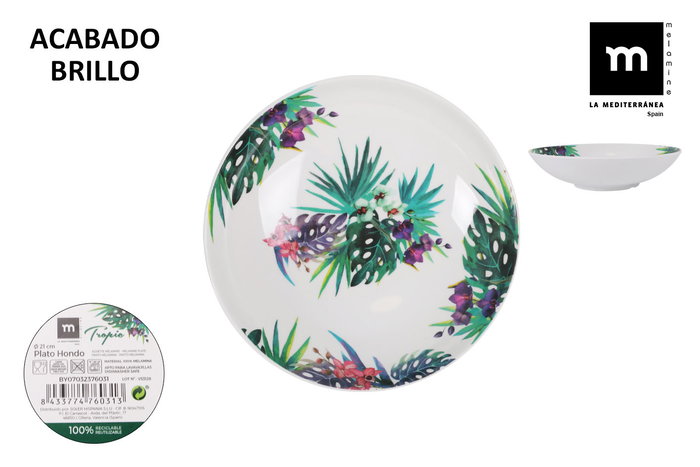 La Mediterranea Plato Hondo Melamina Tropic 21 cm x 5.3 cm Brillo (24 Unidades)