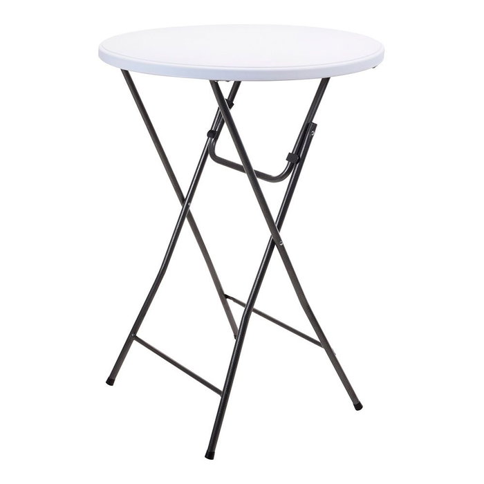 Mesa redonda de jardín plegable, blanca. fabricacion: polietileno/acero. ø80 x 110 cm. peso: 6,9 kg. dimensiones plegada: 80 x 4,5 x 138 cm
