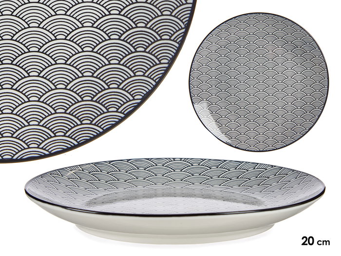 PLATO POSTRE 20CM ONDA JAPONESA NEGRO