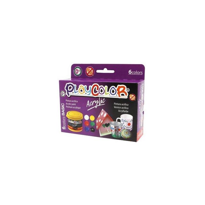 Pintura Acrilica Playcolor Basic Surtido Caja De 6 Colores 40 Ml + Pincel (Blanco + Amarillo + Rojo + Verde + Azul + Negro)