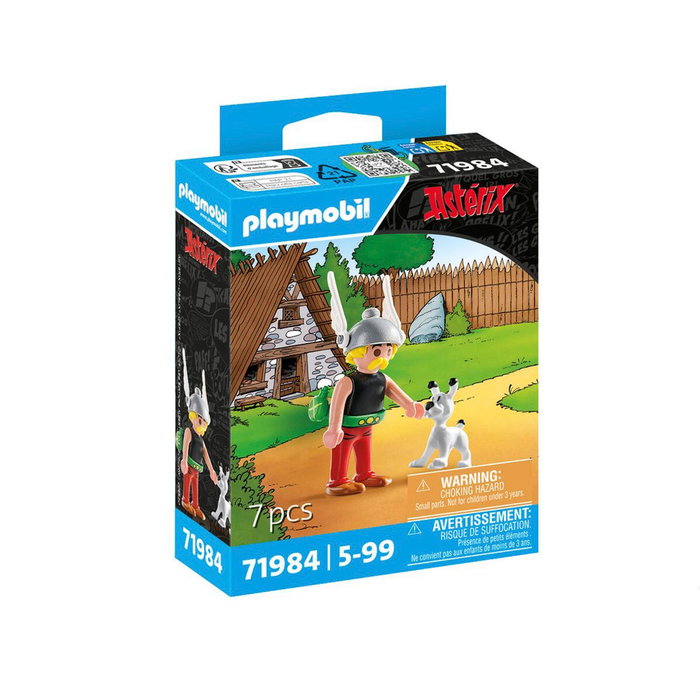 El set incluye la figura de Astérix, el valiente guerrero galo conocido por su ingenio y fuerza, y su fiel compañero Ideafix, el pequeño perro que siempre está a su lado.