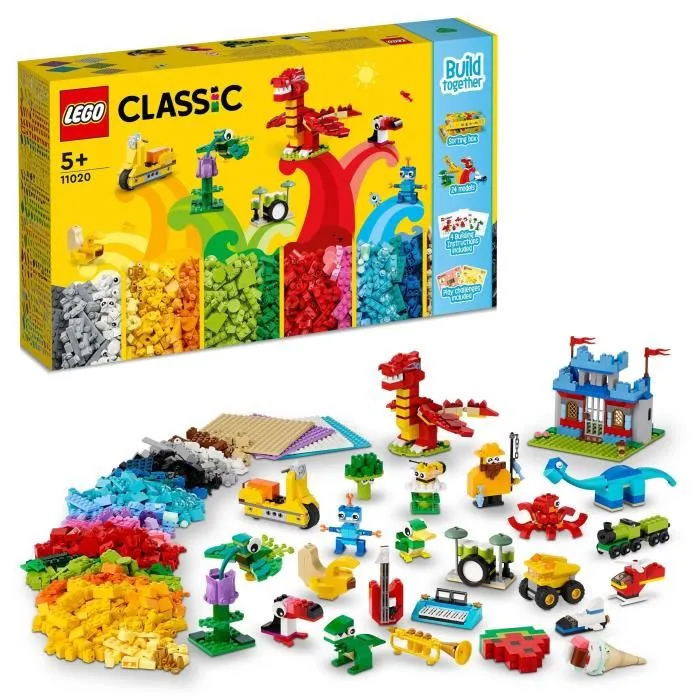 Este juego LEGO® Classic de 1601 piezas incluye 5 placas de construcción, 24 ideas de construcción, divertidos desafíos de construcción y una caja para ordenar los ladrillos LEGO incluidos.