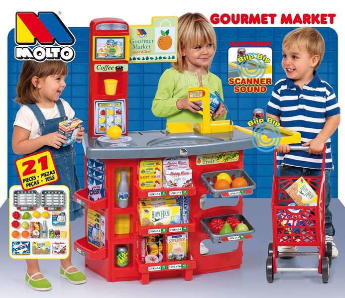 Molto Supermercado con 20 accesorios y carrito de la compra. Scanner con sonido. 103 cm