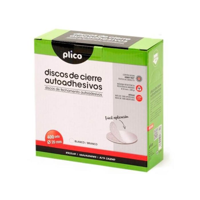 Plico Cierres de Cierre Autoadhesivo Textil Ø20 mm - Caja 400 Discos - Blanco