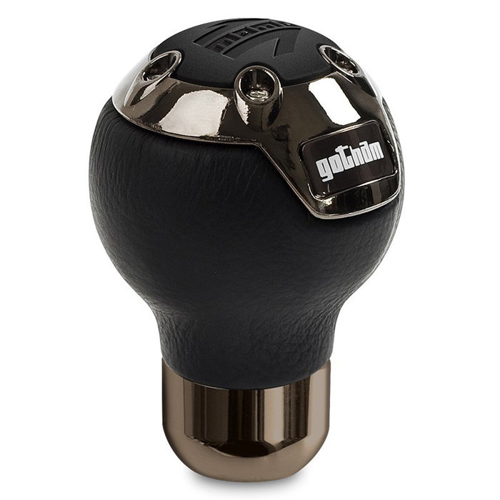 Momo MOMPOGOTHAM0BLKL Pomo de Cuero Negro con Detalles Cromados, Emblema Gotham, Diámetro 53mm, Altura 72mm