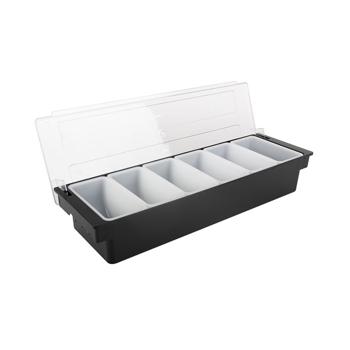 - La estructura de ABS se completa con una tapa de plástico y bandejas para condimentos fácilmente extraíbles.