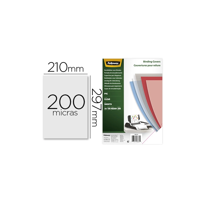 Fellowes Tapa Encuadernacion PVC Transparente Cristal DIN A4 200 Micras Pack 100 Unidades