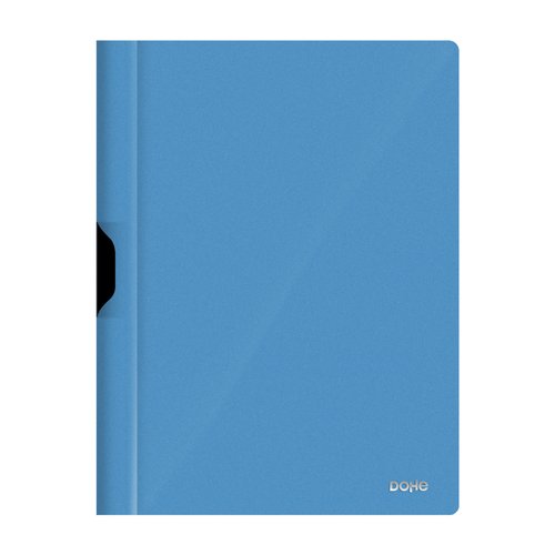 Dosier con clip metálico negro en tamaño A-4, con tapa fabricada en polipropileno transparente de 160 micras y trasera opaca piel de naranja de 350 micras, para guardar hasta 30 hojas.