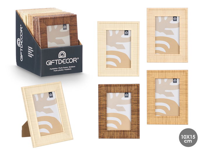 Giftdecor Portafoto Rayado 10x15 Plástico, Madera, Vidrio Surtidos Beige, Crema, Marron 15.5x20.5x2 cm (Set de 24)