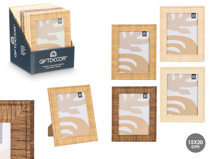 Giftdecor Portafoto Rayado 15x20 cm Surtido Plástico Madera MDF Vidrio Metal Beige Crema Marrón Plástico (Set de 24)
