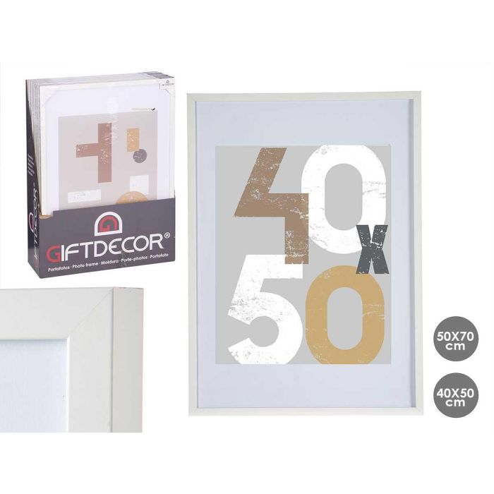 PORTAFOTO PARED MADERA PASPARTU 40X50CM BLANCO