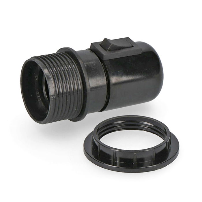 Portalámparas e27 con interruptor con arandela semiroscado 250v salida de cable frontal negro (envasado)