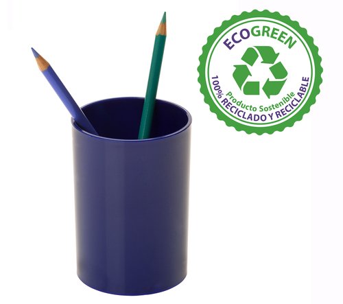 Cubilete de gran capacidad para lápices, fabricado con materias primas 100% recicladas y reciclables. Ideal para tener lápices, bolígrafos o reglas, siempre ordenados. Medidas: 105 x 75 mm.