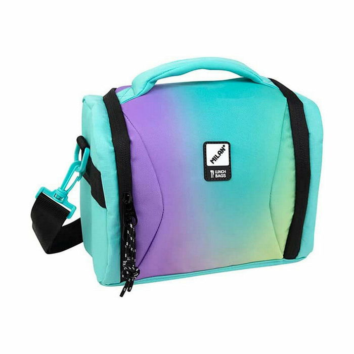Bolsa isotérmica porta alimentos de gran capacidad. Serie Sunset verde.. Inspirada en los colores y diseño originales de las gomas de borrar MILAN. Interior aislante térmico (frío/calor) para una mejor conservación de los alimentos. Apertura total para una mejor accesibilidad y limpieza. Correa regulable y extraíble, asa superior. Tejido exterior 'ripstop': ligero y resistente a la rotura y rasgaduras. Utiliza una técnica especial que teje hilos gruesos de refuerzo a intervalos regulares en un patrón entrecruzado. Composición tejido: exterior de poliéster y forro interior isotérmico (P.E.V.A.). Medidas: 24,5 x 20 x 16 cm. Capacidad: 5 litros.