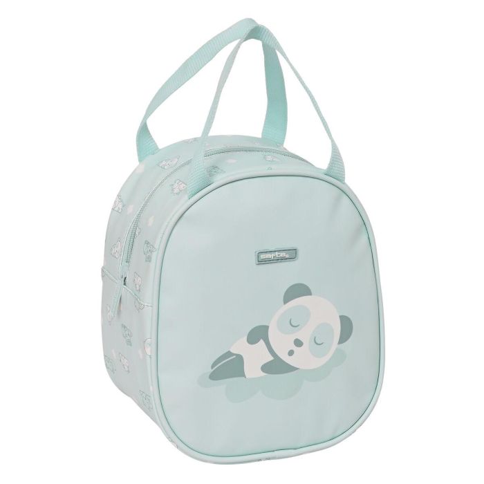 Interior forrado de alumínio para mantener frio-calor. Asa de mano en la parte superior. Material de fácil limpieza.