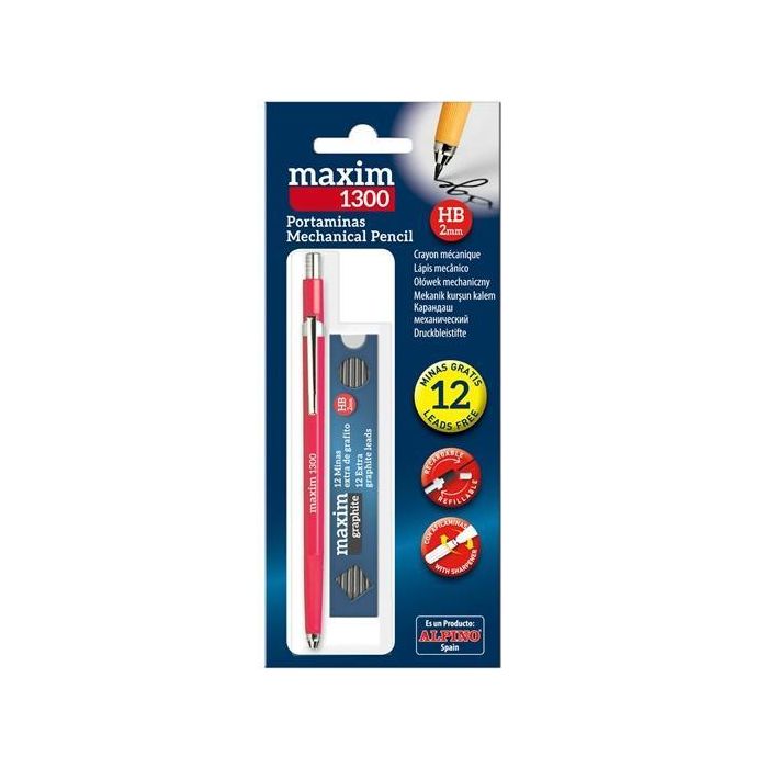 Alpino Portaminas Maxim 2.0 Hb con Caja de Minas Blíster, Recargable y con Afilaminas