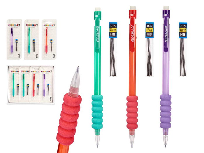 Pincello Portaminas Silicona con 12 Minas Recambio, Plástico, Carbon, 7.8 x 21 x 1.5 cm (Set de 48)