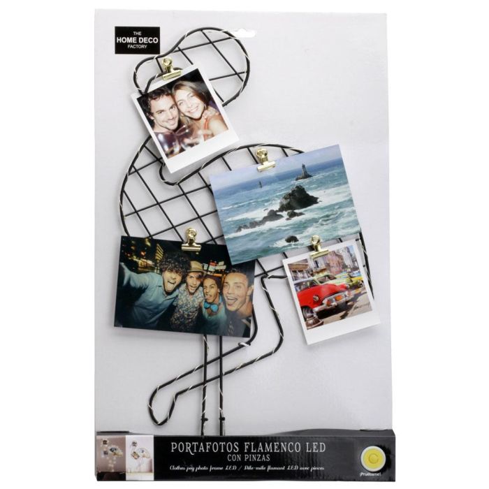 Home Deco Factory Portafotos Flamenco con Pinzas e Iluminación LED para Colgar o Apoyar Recuerdos Decoración