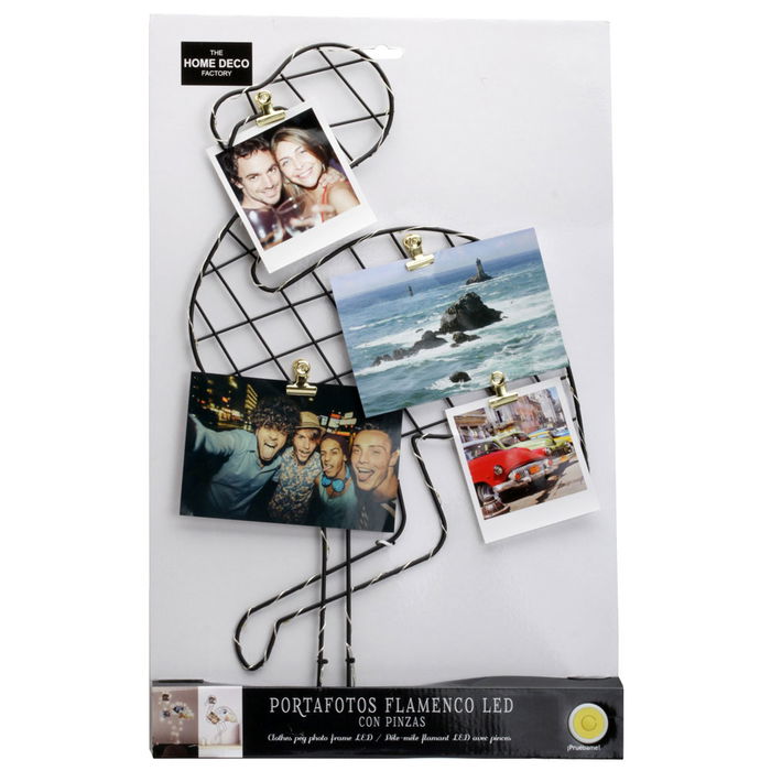 - Resalte sus mejores recuerdos en este portafotos para colgar o apoyar en la pared, en forma de flamenco. De metal.