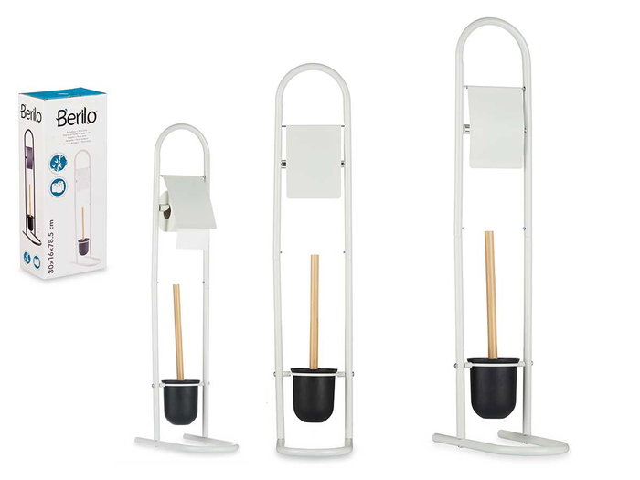 PORTARROLLO ESCOBILLA METAL BAMBU BLANCO