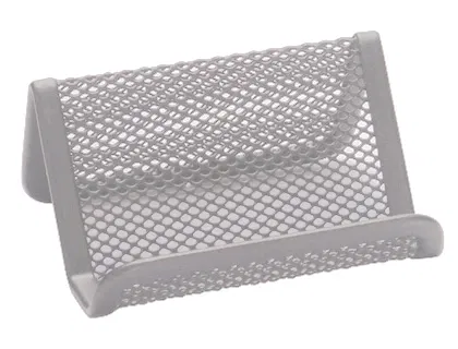 Muy útil para mantener las tarjetas de visita ordenadas, con una capacidad de 30-40 tarjetas, dependiendo del grosor de las mismas. También sirve como expositor de tarjetas. De rejilla. Medidas: 110 x 75 x 50 mm.