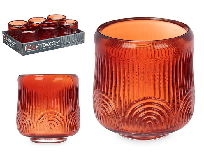 Giftdecor Portavela Círculo Raya Teja Cristal 9x9x9.5 cm (Set de 12)
