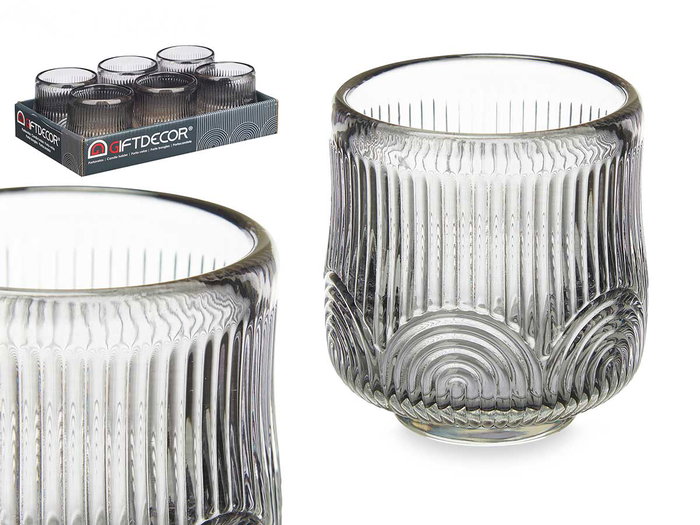 Giftdecor Portavela Círculo Raya Pequeño Gris 7.5x7.8x7.5 cm (Set de 12)