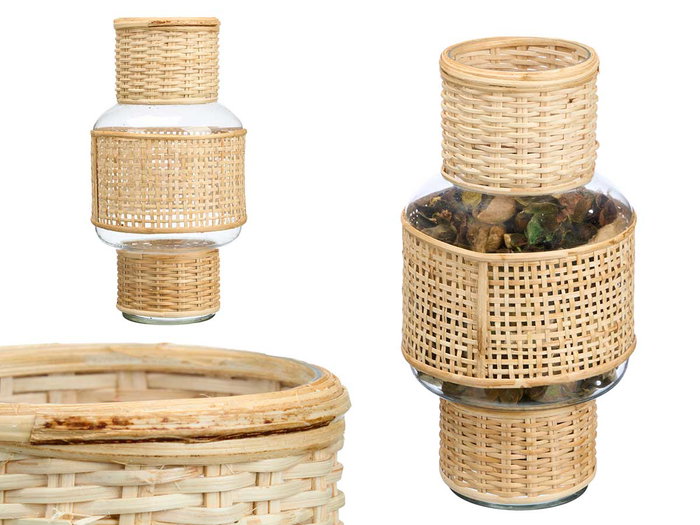 Giftdecor Portavela Vidrio Rattan 15.5x31x15.5 cm (Set de 6)