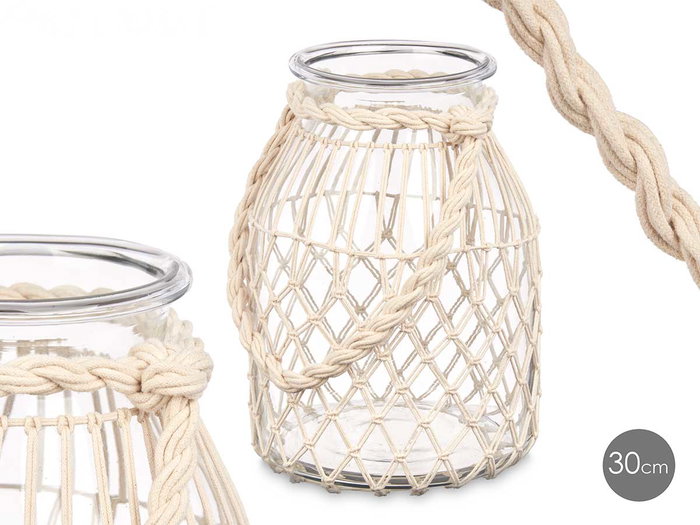 Giftdecor Portavela Vidrio y Cuerda Blanca Transparente 22 cm x 30 cm x 20 cm (Set de 4)