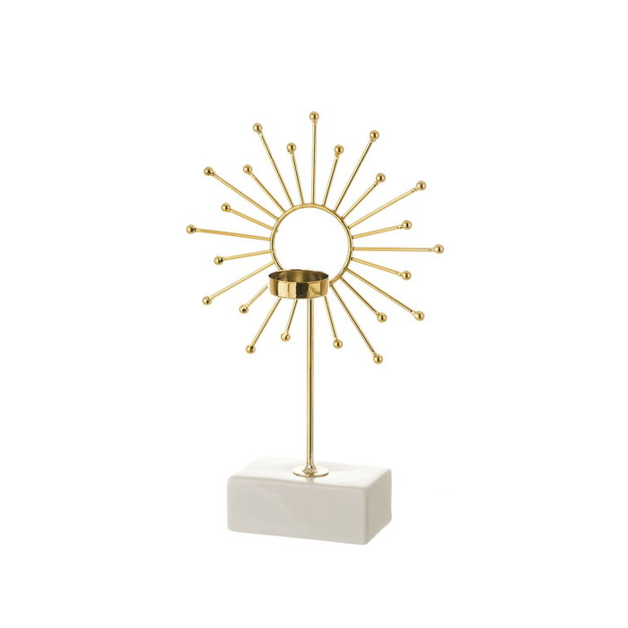 Portavelas Blanco Dorado Cerámica Hierro 18,4 x 8,4 x 29,1 cm