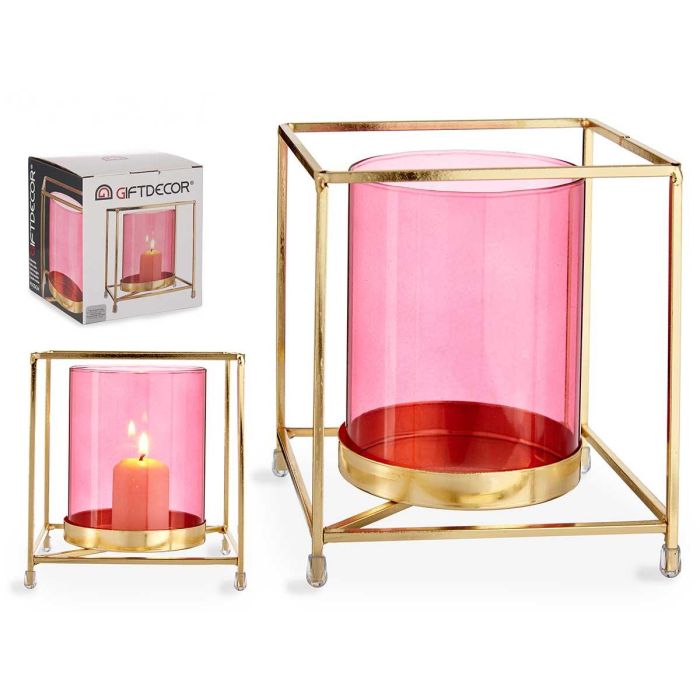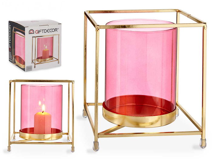 BASE VELA CRISTAL CUAD ROSA METAL ORO GRD
