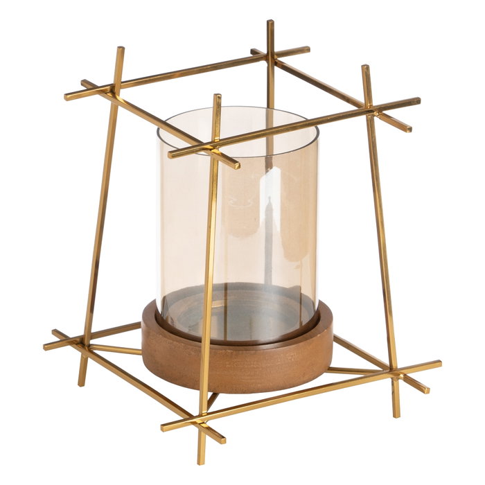 Portavelas Oro-Marrón Metal-Madera 20 X 20 X 23 cm