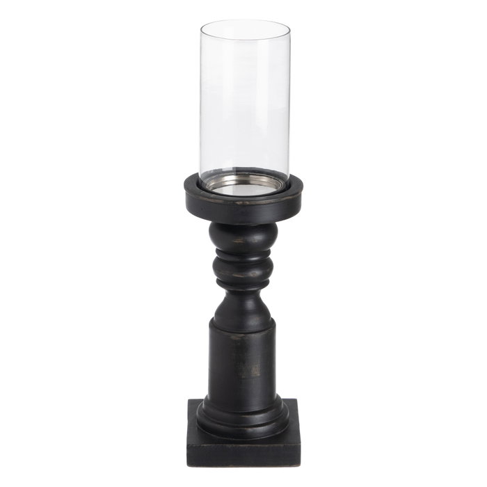 Portavelas Negro Cristal-Madera 12 X 12 X 47 cm