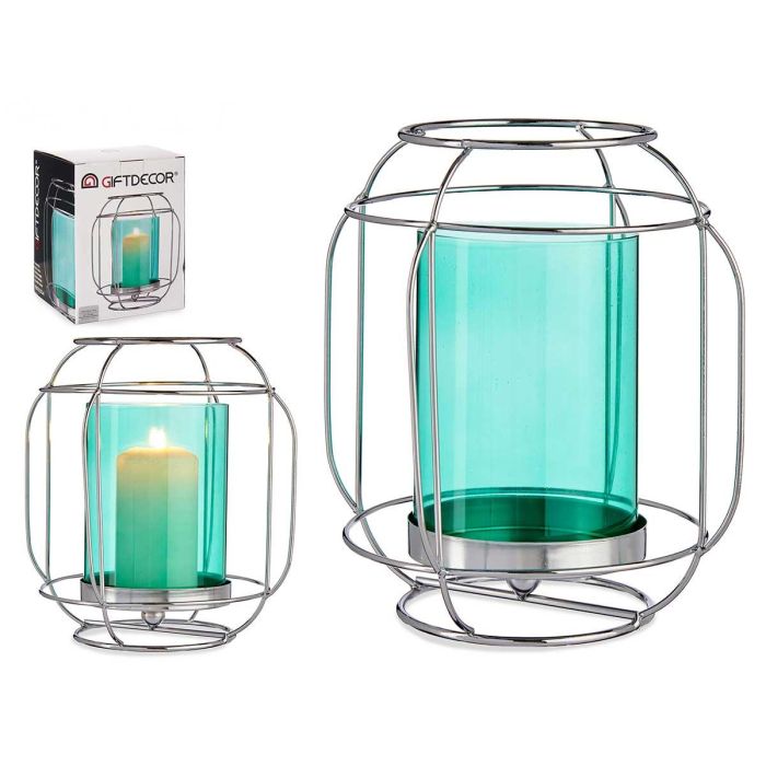 BASE VELA CRISTAL FAROL AZUL METAL PLATA