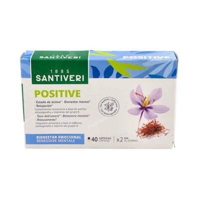 SANTIVERI Positive 40Cap. Complemento alimenticio con azafrán y ashwagandha para relajación y bienestar mental, apto veganos