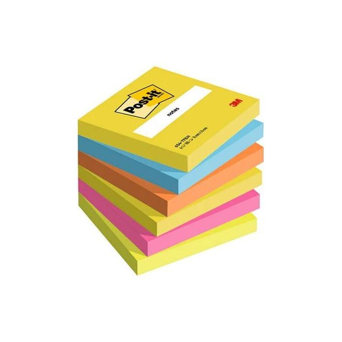 Post-It Bloc Notas 654 Energetic Neón 76x76mm, Paquete de 6 Blocs